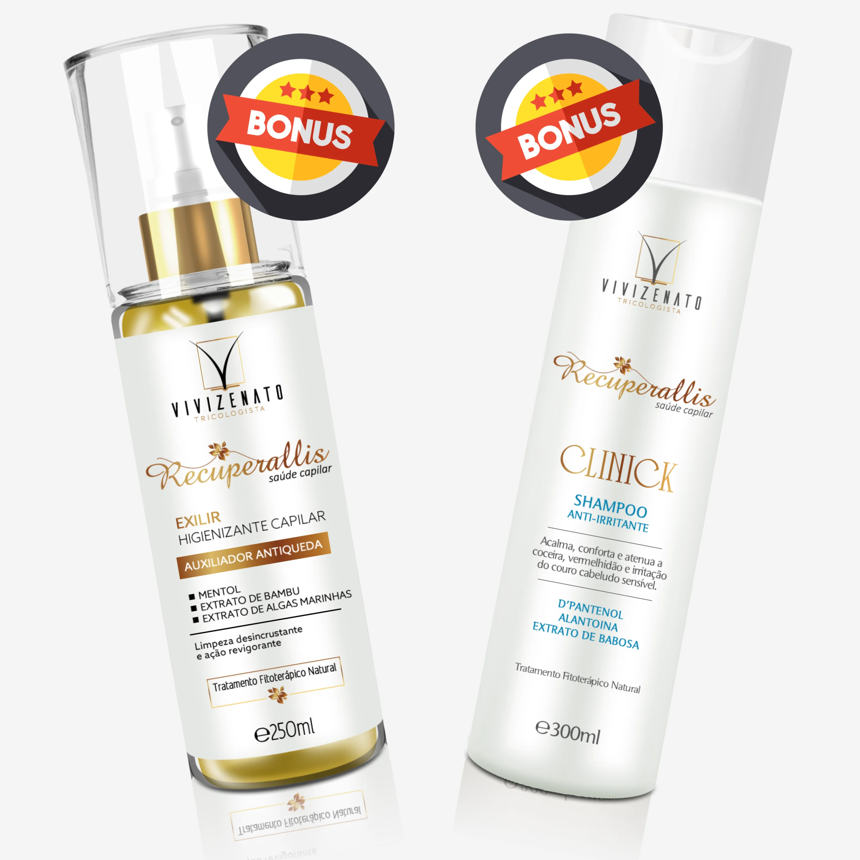 Na compra de 5 frascos: Shampoo Clinick + Elixir Recuperallis