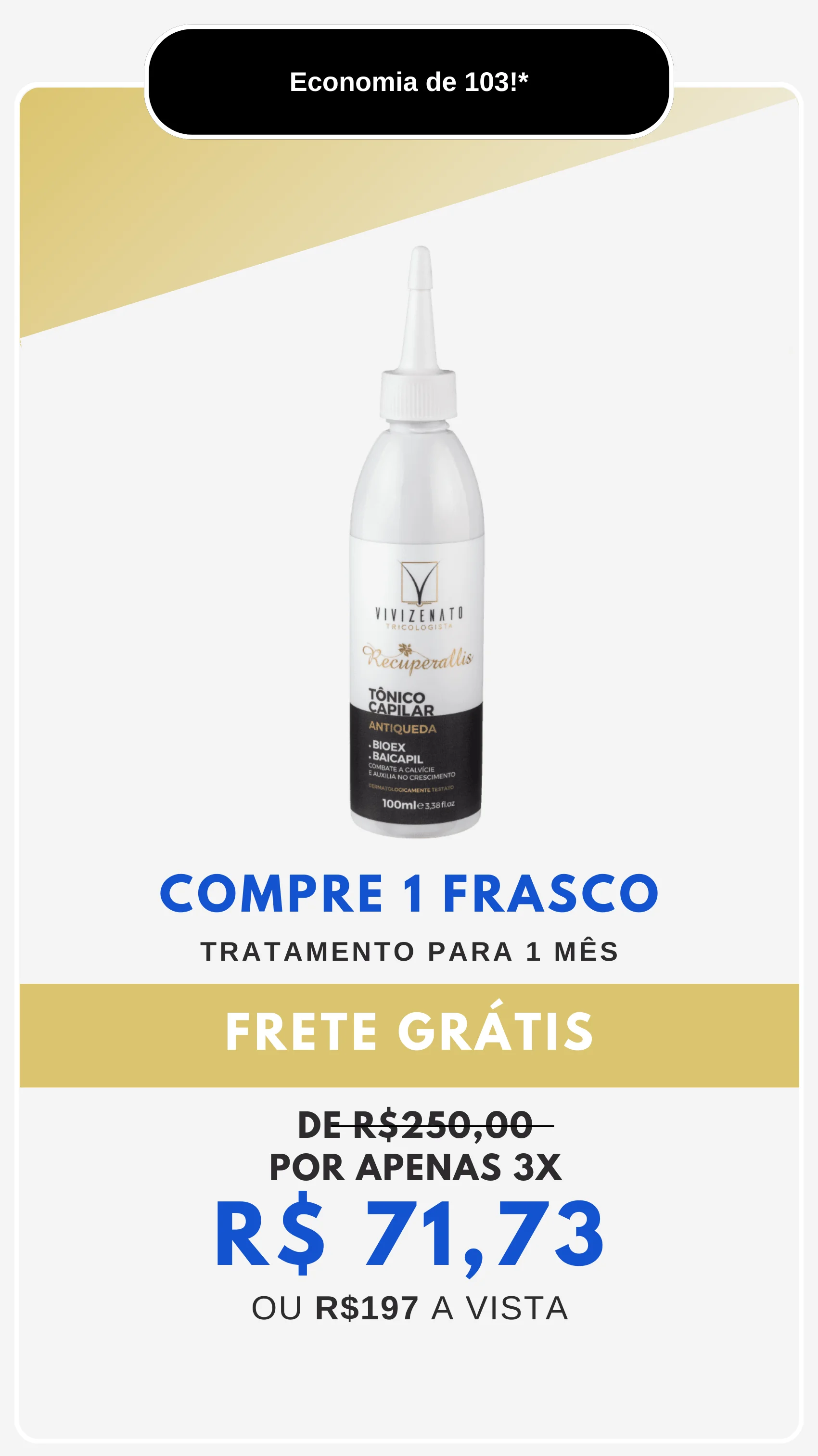 Além disso, esse tratamento foi comparado com os principais Métodos tradicionais usados por todo o mundo, inclusive comparado ao Minoxidil e Finasterida, e teve uma ação de eficácia até 10x mais acelerada e duradoura que todos eles. Dê uma chance ao Tônico Capilar e restaure sua saúde capilar.